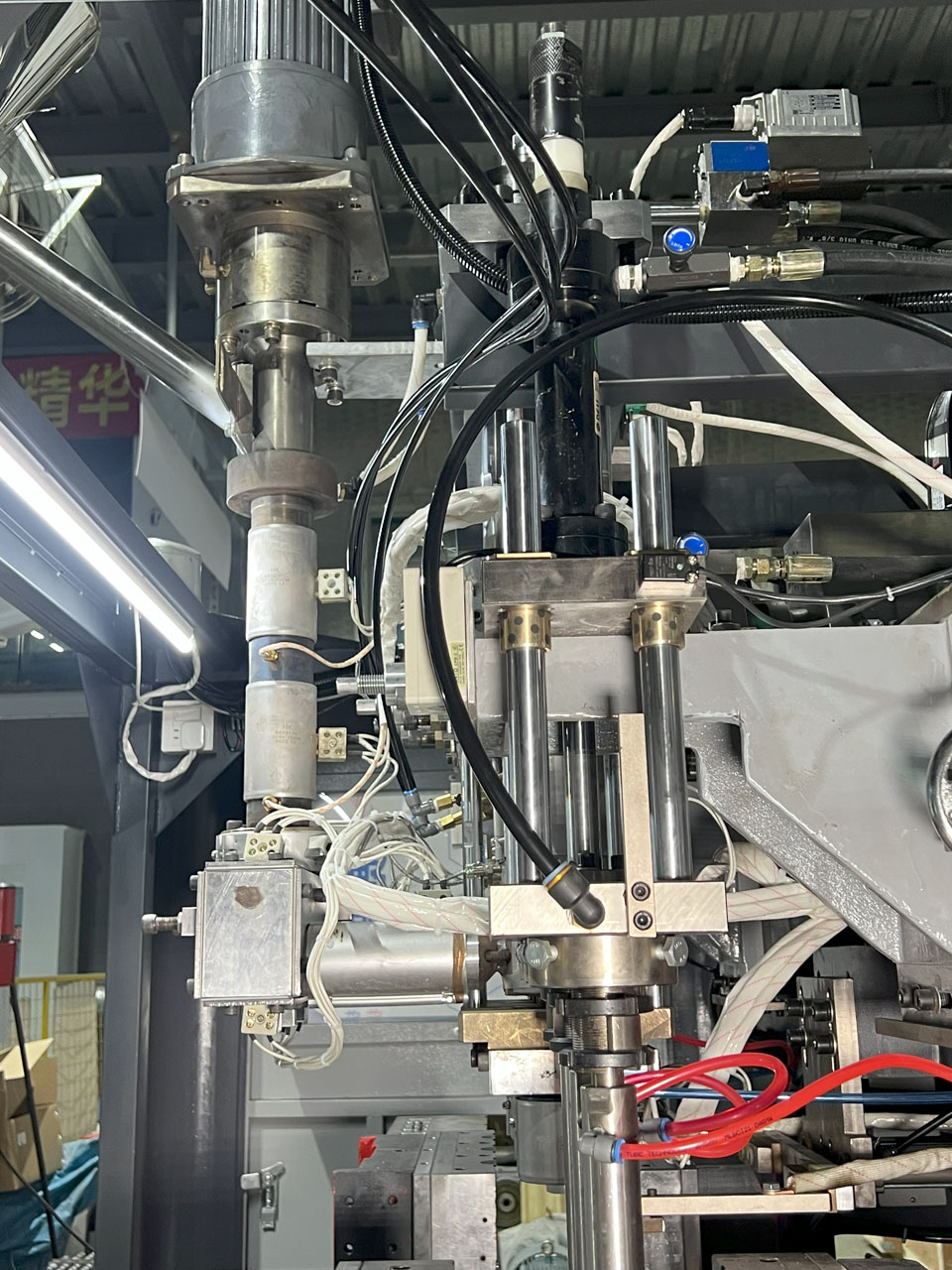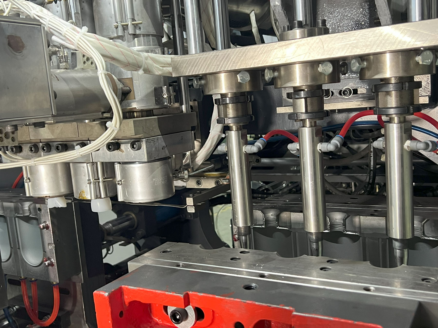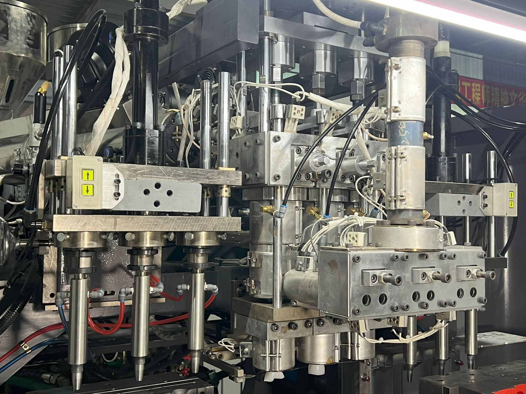 Внутри формовочной станции прямо-зажимной машины для экструзионно-выдувного формования LEKA Machinery.